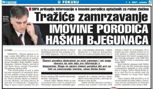 U javnosti se ponovo pojavila izjava iz 2007. godine tadašnjeg načelnika Finansijsko-obavještajnog odjeljenja Državne agencije za istrage i zaštitu (SIPA) Siniše Karana, u kojoj on navodi da će od Savjeta ministara BiH biti zatraženo zamrzavanje imovine porodica haških optuženika.